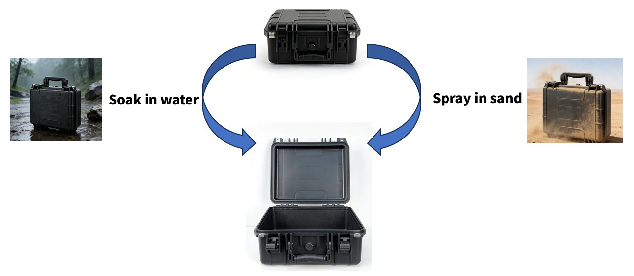 Volledig afgedicht beschermingssysteem Hoofdafdichtstrip: Doorlopende gegoten siliconenstrip uit één stuk, naadloos ontwerp Hulpafdichting: Secundaire afdichtingslip aan de rand van het deksel Vergrendeling: waterdicht en stofdicht ontwerp bij de grendel Scharnierbescherming: Afdichtingsbehandeling aan het uiteinde van de scharnieras Ontwerp van structurele sterkte Uniforme wanddikte, versterkte sleutelgebieden Vierhoekige anti-botsingsstructuur voor verbeterde slagvastheid Meerdere valpartijen gepasseerd vanaf een hoogte van 1,2 meter Aanpassingsvermogen aan de omgeving: Aanpasbaarheid aan een groot temperatuurbereik (-30℃ tot +80℃); UV-verouderingsbestendige behandeling; Zoutsproei-corrosiebestendig (geschikt voor maritieme omgevingen); Anti-schimmel- en antibacteriële behandeling (optioneel)